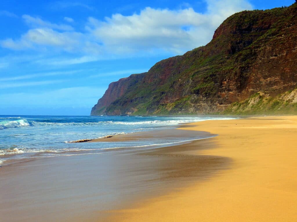 Polihale State Park’s expansive stretch of white sand is more than fifteen miles long, the longest beach stretch in Hawaii. It is tucked away on Kauai’s westernmost tip. The turquoise blue seas in this isolated area of Kauai are its main draw since they are serene, welcoming, and excellent for surfing.