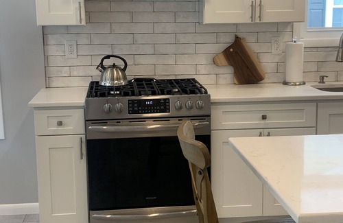 Walk out your front door to the Mary Lou Whitney entrance of the Saratoga Racetrack in under 8 minutes (.3 miles)! This home was fully remodeled in 2023. Vinyl hardwood floors throughout, the first floor has a large kitchen with island that seats 5, dining area (kitchen is fully stocked) with an open family room concept and has a new 65 inch smart TV (perfect for entertaining). The first floor also has a king master bedroom , en-suite bathroom, walk in closet, and the second full bathroom. Downstairs has a full bathroom, laundry room, twin bedroom, queen bedroom, second living room with a smart TV and 2 pullout twin sleep sofa’s. The house has a front porch and back deck for you to relax with large fenced in backyard. The house is conveniently located a quick 0.3 mile walk to the track and 0.9 mike walk to downtown Saratoga, with its outstanding restaurants and shops! Before booking, please know this is a quiet, residential neighborhood, and we ask guests be respectful of noise after 10pm. Don’t miss out on this little gem of a home and learn why Saratoga is "the summer place to be!"
