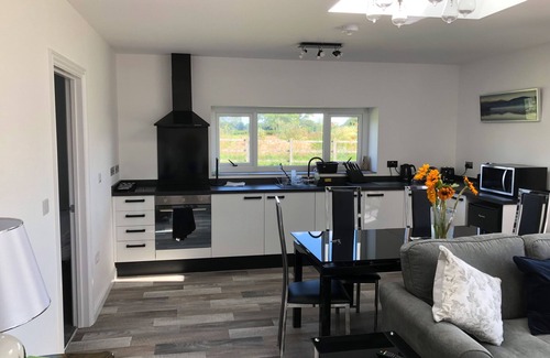 Amenities: Oil central heating. Electric oven and induction hob, microwave, fridge, shared fridge/freezer, shared washing machine, shared tumble dryer, shared dishwasher (all shared in communal laundry area), Smart TV, WiFi. Fuel and power inc. in rent. Bed linen and towels inc. in rent. Off-road parking for two cars. Electric car charging point available, please bring your own charging lead. A supplementary cost for car charging is payable at the property based on usage. Enclosed paddock and astro turfed patio area with seating and gas barbecue. Two well-behaved dogs welcome providing they're of good temperament and no larger than a golden retriever. Note: Anything larger than a golden retriever please contact the owner Note: £50 pet charge applies. Sorry, no smoking. Check in is 2pm. Shop 2.2 miles, pub 3.5 miles. Note: The laundry area is shared with the other property. Note: There is a sofa bed in the sitting area to allow for a flexible sleeping arrangement, there is a charge of £40 for the laundry for the sofa bed. Note: There is an adjoining door leading into the neighbouring property which will be locked unless the properties are being booked together. Please note that this property does not accept children under the age of 8 .
