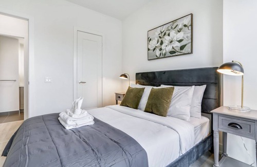 Luxury condo with parking at Sunnybrook Park, conveniently located at Leslie & Eglinton E. Close to highways, transit, & amenities. Enjoy a fully-equipped kitchen, in-suite laundry, high-speed internet, smart TV, desk with chair, living/dining areas, 2 queen beds, balcony. Condo amenities include: Concierge, Yoga Studio, Spin Studio, Fitness Centre, Outdoor Pool, Whirlpool, Change Rooms, Grand Front Entrance Lobby Lounge, Media Room & more! Professionally Managed by TO Stays Inc 30night min stay