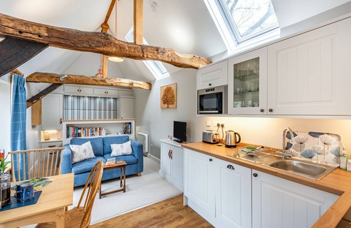 Shower Room: Cubicle Shower, Heated Towel Rail, Toilet. Electricity, bed linen, towels and Wi-Fi included. Laundry area with washing machine and tumble dryer (shared with other property on-site). Courtyard with garden furniture. Bike store. Private parking for 1 car. No smoking. Please note. This property has a security deposit of £150. Sorry, no children. . A charming cosy cottage set on the edge of the South Downs National Park with the peaceful countryside on the doorstep, ideal for walkers. The Old Workshop is one of two holiday cottages set on a small working farm surrounded by wonderful Sussex countryside and within walking distance of a charming Sussex village. Cleverly converted from a former working carpentry barn, the conversion has been carried out to a high standard and the lovely vaulted ceilings and exposed timbers give the properties a unique sense of history.