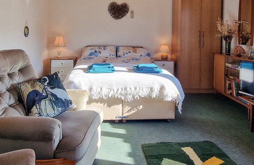 Shower room: With shower cubicle and toilet.. Electric central heating, electricity, bed linen, towels and Wi-Fi included. Open sitting-out area and garden furniture. Private parking. No smoking. . As you enter The Old Orchard you are greeted by a small hall which leads to the open plan living, dining, bedroom, and kitchen area. The bedroom area has a double bed, while the living area has two comfy armchairs to relax in after a day out. The kitchen is equipped with all you will need to create a light meal. There is also a separate shower room with an electric shower. Outside, you have a seating area with table and chairs that overlook the owners’ free range chickens.