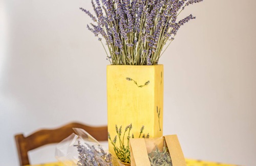 The cottage on first floor, is ideal for a couple, spacious and bathed with light. The sunny terrace offers a magnificent view on the wooded garden shared with the owners as well as on the hills of the Luberon natural park.