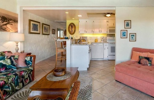 This 1-bedroom, 1-bathroom unit comfortably accommodates up to 4 guests with a king-sized bed in the bedroom and a queen sleeper sofa in the living area. Recent upgrades include new kitchenware, a new bed, refreshed countertops, and updated furnishings for a modern yet island-inspired stay.