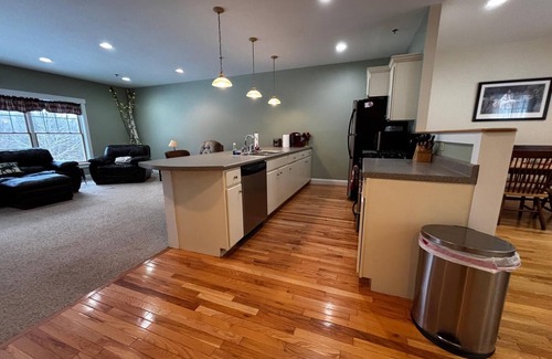 New listing special from VRBO Premier Hosts! Less than 10 minutes from Sugarloaf's Ski Lifts, this 3 level, 4 bedroom home has everything you need for a perfect ski getaway. Whether you're hitting the slopes, enjoying après-ski at The Rack, or just relaxing, this spacious house is your ideal base for Sugarloaf and Carrabassett Valley's best winter activities! With a fully stocked kitchen, TV's, 2 large living rooms, and plenty of space to spread out on the 3 levels, it's ideal for families! Our 4 bedroom, 3.5 bathroom, spacious 3 level home can sleep up to 9 people in 5 beds. The walkout basement level has a large living/rec room area with a queen bed and a single bed and a full bathroom. The main level has a large kitchen, living room, and a half bath, and the upper level has 3 x Queen bedrooms, 2 full bathrooms (1 ensuite), and a washer/dryer. Guests have access to the entire home. The home is located in a quiet condo community just off of Rt. 27 across from The Sugar Bowl and the Carrabassett Airport Trailhead. It's a quick, easy drive to Sugarloaf's ski lifts, as well as the nearby Sugarloaf Outdoor center for cross country skiing.