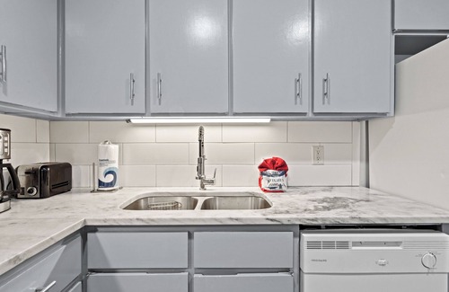 The second bedroom offers a queen-sized bed and a wall-mounted TV, while the third bedroom offers two twin beds and access to the deck. These bedrooms have access to a full bathroom with a shower and bathtub combination just down the hall.