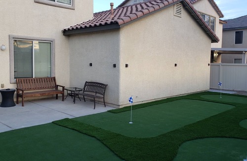 Make wonderful memories in this unforgettable house. It is a house in vegas that has a mini putt-putt golf for a backyard. And like no other, you may enjoy shows and movies in an 86 inches flat screen TV. The house is accessible to both I15 and 215 freeways.