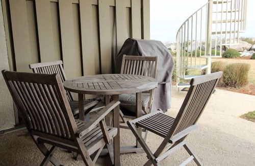 Awaken after a day full of adventures from the comfort of the primary bedroom, furnished with a King bed for a restful night's sleep. Additional sleeping accommodations include a Queen sleeper sofa, comfortably accommodating up to 4 guests. Spend serene evenings on the cozy patio, complete with a charming table and chairs, offering breathtaking views and the gentle coastal breeze as you unwind to the soothing sounds of the waves.