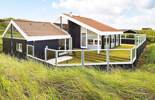 Spacious holiday cottage in the 1st dune row on a large plot bordering the beach. From the house you have panoramic views of the ocean. 150 m² cottage protected by the large and unique dunes on a large plot right to one of the best beaches in Denmark right between Løkken and Blokhus. There is a hall and scullery with washer and dryer, 35 m² kitchen-family room with underfloor heating and an open dining area with access to the large south/west-faced terrace. Split-level living room with wood-burning stove. The kitchen-family room and living room have high-vaulted ceilings and large windows. 2 bathroom with underfloor heating with the same granite table tops as in the kitchen. Both bathrooms have shower and the large bathroom also has a large, lowered whirlpool for 4 people. The 13 beds are located in 5 bedrooms and a 22 m² large mezzanine. Modern, high quality furnishings and the kitchen-family room and living room have halogen lighting with dimmers and all tile floors underfloor heating. The mezzanine has a small TV with DVD and satellite receiver. There are 2 well-placed terraces in several levels of a total of 120 m² where you can find shelter and enjoy the sun. The house is located on a cul-de-sac and from both plot and house you have views of the characteristic dune scenery. If you walk just 150 m along the large plot with ocean view and sunset you will be on the kilometre long sandy beach. No letting for youth groups.A refundable deposit might be charged closer to your check-in date. Thesecuritydepositensuresasmoothstayandcoversany additionalservicesorconsumptioncharges.Thisdepositcoversutilitiesconsumedduringyourstay andanyadditionalservicesthatmaybetaken.Thefinalamountwillbeadjustedbasedonactualmeter readings,actualusageofextraservices,andanyremaining balancewillberefundedwithin21daysaftercheckout.Thisdepositsimplyactsasaprepaymentforchargesthat youwouldanywayspayfor,ensuringaseamlessstayand check-outexperience.