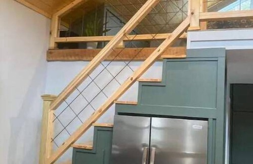 The Cabin is a 400 sq ft tiny home with a large walk in shower, full kitchen with full size appliances, washer and dryer, a king size bed in the sleeping loft and queen size pull out couch on the ground floor, large covered porch, outdoor dining area, and fire pit for late night chats!