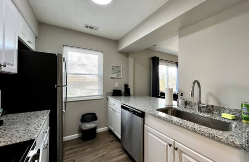 This cozy two bedroom apartment is part of a small complex of just 12 apartment condo units in Middletown, Ohio. Live like a local with plenty of room for four to sleep comfortably in our two bedroom and one bathroom unit. Close to I-75 and just an exit up from the Monroe Outlet Malls, there is plenty to do in this part of town! Relax on the comfortable sectional couch to watch TV on your favorite app, or grab a bite and sit at the bar table to eat! Great for small families or travelling work.
