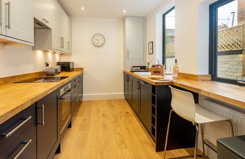 Downstairs is the living area comprising of a separate lounge, dining area and kitchen. The living room has a lovely open fire for those evenings when all you want to do is to curl up in front of the smart TV to enjoy your favourite film. For those evening meals there is a fully fitted kitchen in which you can prepare something delicious! It has everything that you will need and is a lovely space to enjoy doing this. In addition to this there is a dining area with a table that easily seats all four. There are french windows leading from the dining area out to the rear courtyard. There is a bistro table and chairs to enjoy the light bright evenings in York.