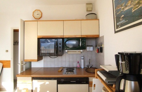 This 4-floor residence comes with a lift. Surface area : about 23 m². 1st floor. Orientation : South. Hall with vacuum cleaner. Hall with 2 bunk beds. Living room with 4 chairs, sofa bed (130 cm), table, coffee table. Kitchen with kettle, coffee machine, oven / microwave, toaster, electric cooking ring. Bathroom. WC. Balcony with bench, 3 chairs. The beds in elevation are not suitable for children under 6 years.
