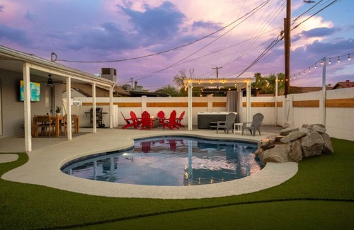 Best-rates for the Tempe house starts from $411 per night with includes Air Conditioner, Pool, Child Friendly, Hot Tub, Balcony/Terrace, Wellness Facilities, Entertainment, Internet, Security/Safety, Bedding/Linens, Fireplace/Heating, Barbecue/Outdoor Cooking, Kitchen, Parking, Pet Friendly, TV, Laundry with all other facilities. RBO matches every traveler with their perfect accommodation, whether you are traveling with a group, friends, family, or pets.