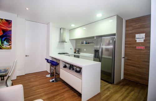 This is ENERGY LIVING; the architectural award winning iconic building of Medellin! This 18th floor apt is the highest floor in the building with a terrace and has incredible city and mountain views! This amazing apartment features floor to ceiling glass, separate air conditioner units in the living room and master bedroom, a huge balcony, motorized shades, 60" and a 55" Ultra HD 4K TV's, super fast WIFI, even a Nespresso Machine and Amazon Echo Dots! There is a King bed in the master BR and a pull out sofa bed in LR. Rooftop pool and spa with amazing views, a steam room and super gym!