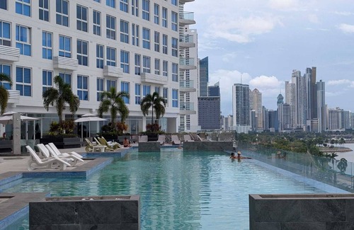 Relax or take a refreshing dip while enjoying panoramic views of the Pacific Ocean and Panama City's skyline. A perfect sunset spot 🌅