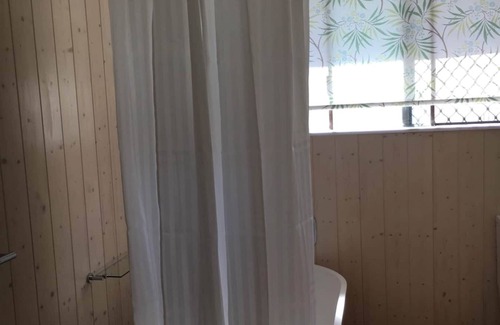 There is a large bathroom with a huge (two people) bath, shower combined. The Bathroom features original style wood panelling finished in a lime wash to add light and elegance to the room. There is a large vanity and modern toilet to compliment. The room is equipped with an automatic exhaust to keep the room fresh, dry and appealing.