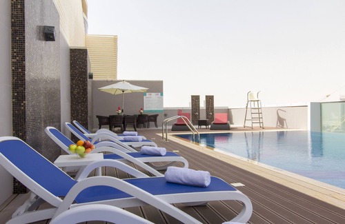 The hotel also boasts a state-of-the-art fitness center, sauna, steam bath which are available to guests. A rooftop swimming pool with its terrace which is open from 08:00 Am hrs to 20:00 hrs UAE Standard Time (GMT+4). The hotel also offers a complimentary shuttle bus to Dubai Mall and Mall Of The Emirates , ensuring a hassle-free and an enjoyable short journey.