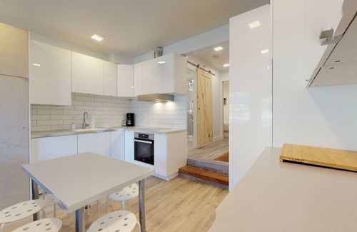 Inside, unwind beside the cozy wood-burning fireplace or whip up a meal in the brand new Miele-equipped kitchen. The condo features luxurious finishes, a Smart TV, high-speed Wi-Fi, and everything you need to feel at home. Ideal for a romantic getaway or a small family trip, this condo sleeps up to four guests comfortably.