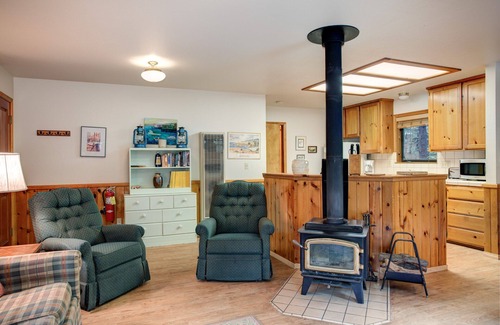 Cecil's Cabin is a charming 2 Bedroom, 1.5 Bathroom home that sleeps up to 5 guests. It is located on the less populated south side of the Merced River where you'll enjoy the peaceful beauty and seclusion. The kitchen is fully equipped, including a dishwasher. A washer & dryer give you the comforts of home while on vacation! The living room includes a wood stove (firewood provided in season), satellite TV, and WiFi. This cabin features two decks. The top deck has an incredible unobstructed view of Yosemite forests, and the lower deck is perfect for those warmer summer days when you prefer the shade to rest, read, or watch the kids while they play outside. This home is located just one mile behind the historic Wawona Hotel, History Center, Golf Course, and a Market, and is less than 30 minutes from Yosemite Ski and Snowboard area! It makes a wonderful home base while you explore and play in Yosemite. The cabin has A/C No Pets Allowed. "EV Charging Station available within five miles of the cabin"