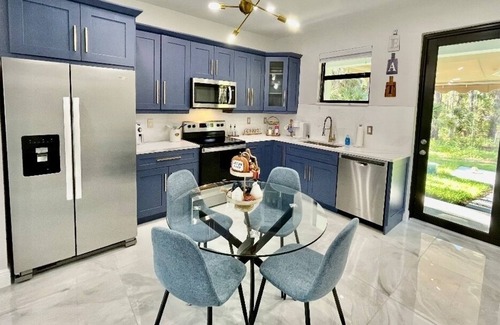 Come stay and relax in this peaceful newly constructed modern apartment. Unaffected by Hurricane Ian, this side of the property has a Modern Blue Beach Vibe. A large yard and beautiful out door area. Plenty of parking - bring your boat or RV! Relax outdoors with a hot tub, grill, picnic table, privacy fence and shade. No sharing. The living room has a romantic electric fireplace. The kids will love the FULL size bunk beds, TV's in each room, beach gear is provided for 8 guests!