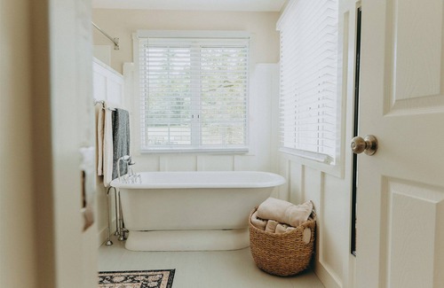 The accommodating farmhouse boasts two full bathrooms stocked with pampering towels and necessities to ensure a carefree stay.