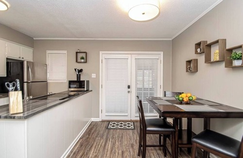 Relax in this gorgeous 2 bed apt in a quiet neighborhood in Little Rock. 6 mins to UALR, 7 mins to UAMS, 2 mins from Target, Starbucks, 3 mins to Chick Fil A, Five Below and Ulta. Convenient parking, unit is just steps from parking. Simply park, head to your new home provided with keycode. The kitchen is stocked with pots, pans, utensils. Laundry and Dryer is in the unit. Head upstairs to the bedrooms, one with king size bed and the other queen size bed. Main bathroom has a bathtub and we provide the small shampoo and soaps. Extra towels present in the linen closet. Bonus is the outside porch area with table and chairs, where you can hang out with friends.