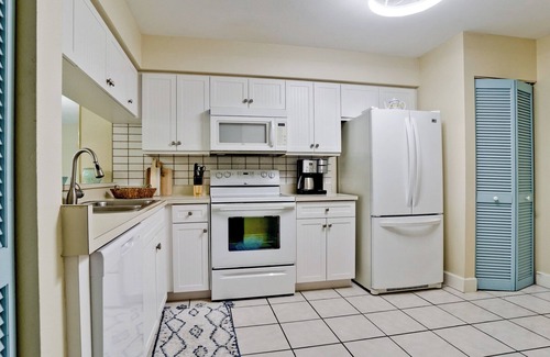 The main bedroom has a TV and new king size bed to aid in getting a gentle nights sleep after a long day in the Florida sun! It has an ensuite bath with a walk-in shower and plenty of closet space. The second bedroom also offers a TV and king size bed. The second bathroom has a shower/tub combo.