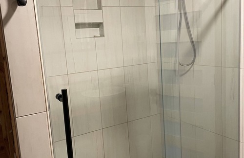 Second floor walk up industrial chic style. Open floor plan with full kitchen, dining table and couch seating 6 while watching large screen TV. Trundle single bed tucked away for extra guests or children, memory foam reading nook is the perfect spot for napping. 2 small outdoor decks, one overlooking the lake. Garage stall parking for 1 car.
