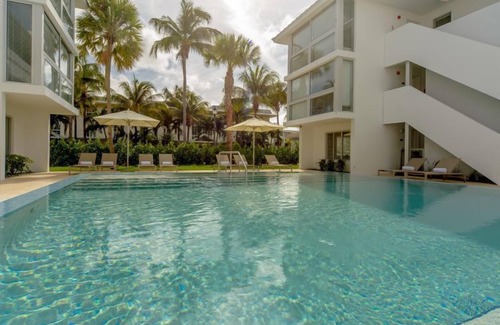 Exclusive unit in Beach Haus Key Biscayne offers a serene island lifestyle a block away from the beach. Fully furnished two bedrooms: one with a Queen size, the second one with two Twin size beds, separate living area, equipped kitchen, full-size refrigerator, stove-top, oven and cookware. Three story building with open corridors, wrapping an infinity pool, accommodates 31 units. Complimentary parking, cable TV and Wi-Fi. You can visit the pristine Key Biscayne Beach with complimentary access to the Beach Club or, enjoy a bike ride on a Beach Haus bike ready for you.