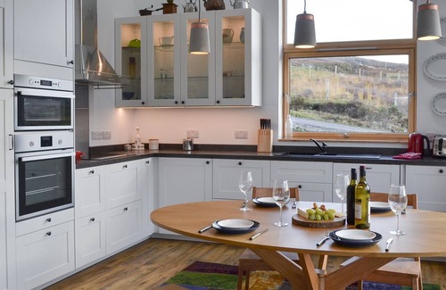 Shower room: With shower cubicle, toilet and heated towel rail.. Electric underfloor central heating, electricity, bed linen, towels and Wi-Fi included. Initial logs for wood burner included. Welcome pack.. Small decked sitting-out area with garden furniture. Private parking for 2 cars. No smoking.. Located towards the northern end of the beautiful Isle of Skye, Hauki (Finnish for pike), enjoys a peaceful setting within the small scattered community of Feriniquarrie, close to Glendale. This architect designed, detached holiday property has been furnished and equipped to a very good standard, and benefits from an open plan design with cosy underfloor heating, beautiful floor-to-ceiling windows to the front, and a large wood burner to sit by in the winter nights. Glendale is a lovely walking area and offers some specialist craft studios, a seasonal café and restaurant, which is open from early May-mid October.