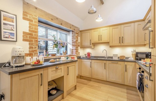 Open plan with high ceilings, which create a light, airy and spacious feel, this property has character in spades and really does offer the ’wow’ factor. The accommodation is all on the ground floor and guests will find much to love about this barn, which accommodates up to four guests and offers two bathrooms, one of which is en-suite. There are two comfortable bedrooms, each with a hairdryer. The private, enclosed garden is perfect for a morning coffee or perhaps for a sundowner, and with the addition of the gorgeous wood burner, this property really is a year-round retreat, whether you are bringing your four-legged friends or not. With a very well-equipped kitchen, a stylish dining area and a comfortable living room, you may well be tempted to relax, unwind and read a book by the fire or maybe log in your Netflix account and catch up on some of those boxsets you’ve been planning to watch.