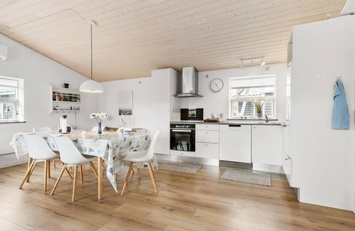 Just a short walk from the sandy beach of the Limfjord, this attractive and inviting vacation home welcomes you.