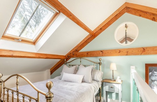 Bedroom 2: With double bed and en-suite toilet.. Gas central heating, electricity, bed linen, towels and Wi-Fi included. Initial fuel for wood burner included, remainder available locally. Grounds with garden furniture. Private parking for 2 cars. No smoking. . This superb cottage is part of an old silk mill situated in a lovely rural setting by the river on the western edge of the Peak District. The space on the ground floor is an open plan, social and light area, with a well-equipped kitchen, living area with a wood burner and a dining area. There is a double bedroom located on the ground floor and a shower room. On the first floor is the second bedroom which is also a double bedroom and has an en-suite. There is a mezzanine that is open on the first floor of the property where you can sit on the sofa or bean bags and enjoy some quiet time reading or playing games.