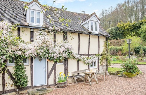 Kitchen: With electric cooker, electric hob and fridge/freezer.. Central heating, electricity, bed linen, towels and Wi-Fi included. Welcome pack. Private parking for 1 car. No smoking. . Whitewells Farm were the first holiday cottages in Herefordshire to have been converted from existing farm buildings into individual self-catering holiday homes in 1978. They all feature original beams throughout, half-cruck trusses and some have vaulted ceilings and beamed room divisions. Situated in the beautiful Herefordshire countryside, Whitewells Farm has a collection of individually styled barn conversions for you to stay in. Converted from one end of the medieval barn, this upside down cottage has two bedrooms and a bathroom on the ground floor. The very large double bedroom has a vanity unit, and second bedroom has a single bed. The bathroom has an over the bath rainfall shower. The staircase leads up to the kitchen/dining area, and the wonderfully beamed living room with outstanding views of the local countryside.