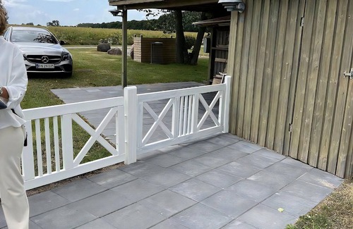 The kitchen is open to the living room and has a dishwasher, a refrigerator / freezer and a microwave. A washing machine is also available. The bathroom has a toilet and under-floor heating. There are bathing facilities in the adjoining building, where you will find a luxurious corner shower cubicle with massage. The bathroom inside the house is primarily for use in the winter, in the rest of the period it is better to use the large bathroom in the adjoining building.