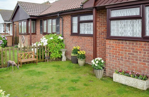 Bathroom: Bath With Shower Over, Heated Towel Rail, Toilet. Oil central heating, electricity, bed linen, towels and Wi-Fi included. Travel cot and highchair available on request. Welcome pack. Enclosed lawned garden with sitting-out area and garden furniture. Bike store. Private parking for 2 cars. No smoking.. Just 500 yards from the sea, this spacious semi-detached bungalow is situated in a private no through road. It is comfortably furnished and has an enclosed lawn garden, making it ideal holiday accommodation. Having two bedrooms, one features zip and link beds, allowing for it to be configured as either twin beds or combined to create a super kingsize bed, making for greater flexibility of sleeping options (please select preference at time of booking).