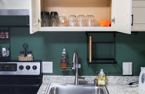 As you step inside, you'll be greeted by a fully stocked kitchen, complete with a stove, oven, refrigerator, microwave, and dishwasher, allowing you to easily prepare delicious meals. Savor your culinary creations at the dining table, surrounded by all the dishes and utensils you need.