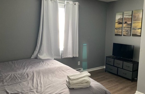 Our two bedroom duplex is a modern, cute, and quaint place that offers two large bedrooms with King-Sized beds and Roku TV's. The kitchen is small but versatile with everything you need to make your homemade meals. There is a full size washer and dryer in the utility room, Large bathroom with plenty of space, dining room table can sit 2-4 people with an added bench, the living room has a 50" flat screen Roku TV that has content for everyone, along with a comfy leather sofa. **Please note this duplex has one exterior door only**