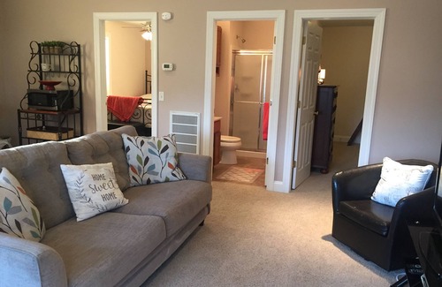 Situated in the quaint town of Mechanicsburg. You will have a private entrance, 2 Bedrooms (Bedroom #1 Queen Bed, Bedroom #2 Bunk Bed and Futon), Full Bath w/Shower, open concept living/dining area with cathedral ceilings make this space feel large on open. Also large window let in lots of natural light. There is also a kitchenette. Our guest house suite, is attached to the hosts primary residence. So we are close by, should you need anything.