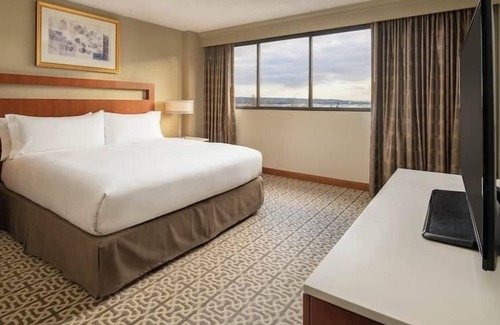 The 1 King Bed 2 Room Suite Sofabed- Non Smoking delivers the cozy comforts of home. The living room features a large work desk, mini-fridge, an overstuffed chair and a double sofabed for extra guests. Sleep deeply in your King-sized bed with piles of plush pillows in the separate bedroom. Enjoy a refreshing shower with plenty of room provided by the curved shower rod. This accommodation is ideal for travelers looking to book a one-bedroom suite in Seattle. With a contemporary decor, hotel offers spacious suites with custom-designed beds and separate living areas where you can stretch out and relax after a full day of exploring. A mere nine minutes from Seattle-Tacoma Airport, this hotel also caters to business travelers and features a business center as well as over 12,377 square feet of flexible event space. Other onsite amenities include a café, lounge, whirlpool tub, indoor pool, as well as an all-day casual restaurant with Northwest favorites and buffet breakfasts. If you want to do some exploring, rest assured that the hotel places you near the Seattle Waterfront, where you can take a ferry to visit the iconic Puget Sound Islands. In November 2022, Hilton and Peloton Interactive, Inc. announced an industry-first partnership, making Hilton the first hospitality brand to feature Peloton Bikes across its entire U.S. hotel portfolio of 18 award-winning brands. Nearly all 5,400 U.S. Hilton-branded hotels - from Hampton by Hilton to Waldorf Astoria - will feature at least one Peloton Bike in every fitness center, providing guests with a more holistic wellness experience, including access to Peloton's world-class instructors and expansive connected fitness content. For more information regarding Hilton and Peloton Interactive, Inc's partnership, please contact Hilton directly.