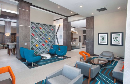 The 1 King Studio Suite Nonsmoking + 2 Queens Nonsmoking at Hampton Inn & Suites LAX El Segundo is a spacious suite with a connecting room which provides additional comfort to your Los Angeles experience. The grand living area features an oversized work desk, sleeper sofa, and entryway with wet bar and plenty of counter space. While the suite’s sleeping area boasts a King-sized bed, the connecting room provides two Queen-sized beds. Both the suite and connecting room offer blackout curtains to facilitate a deep night’s sleep. Two stylish bathrooms adorn this suite with glass-enclosed couple’s showers, chic vanities, and extra space to elevate your morning routine. This suite is ideal for those seeking a studio suite with connecting room in Los Angeles. Tucked away in one of Los Angeles’ posh neighborhoods, Hampton Inn & Suites LAX El Segundo is perfect for those making a quick business-related stop or are planning a long-term stay alike. This hotel puts you right next to LAX airport and just minutes away from Dockweiler Beach, The Forum, and Lakes at El Segundo golf course. After a long day exploring the city and enjoying its beaches, unwind in the Flight Deck Lounge, the hotel’s own lobby bar which features small-plate cuisine, specialty cocktails, and local draft beers. Make sure to take some time to swim in the indoor pool and take in some California sun on the outdoor patio to optimize your relaxing L.A. experience.