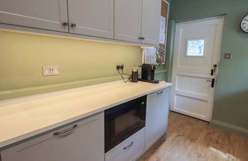 Amenities: Gas central heating. Electric oven, gas hob, Range cooker, microwave, fridge/freezer, washing machine, tumble dryer, dishwasher and additional fridge. Two Smart TV's, Wi-Fi, DVD and VCR player. Fuel, power inc. in rent. Bed linen and towels inc. in rent. Highchair available. Private driveway parking for 5 cars. Garden with lawn, furniture, barbecue. Two well-behaved pets welcome. Sorry, no smoking. Shop 1.6 miles, pub 0.3 miles. Note: Check-in from 4pm and check-in from 10am. Please note: The property is reached by a short, steep drive, all cars can access it, but guests with limited experience of hill driving should bear this in mind.