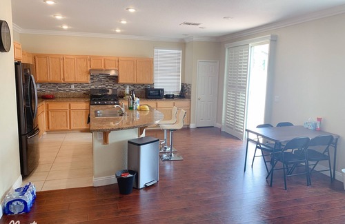 2300SF LUX 3BD HOUSE WITH BIG BACK YARD has 3 Bedrooms , 2 Bathrooms, and max occupancy of 8 people. The minimum rental for this property is 1 nights, but this can change depending on the season you plan on staying. Previous guests have given good rated it, and VRBO labeled it a top-rated House because of the excellent services rendered by the owner or manager of this House, and has consistently provided great experiences for their guests. Most families or guests that use it recommend it to their friends and some of them are repeat guests. House has a friendly neighborhood, and the Rhodes Ranch has interesting places to visit. If you want to learn more about the House in Rhodes Ranch, such as places to visit and things to do nearby, you can check below to learn more.