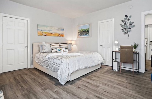 Stay in our charming & relaxing unit with full bathroom. Equipped with wifi, Smart TV(Ready for your NetFlix login), AC, full kitchen with refrigerator, stove, coffeemaker, air fryer and dishwasher.
