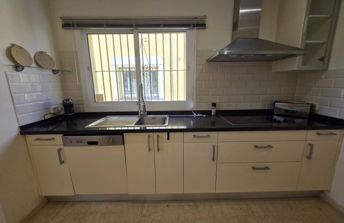 This charming semi-detached house, located in the heart of Mijas Costa, will be the ideal destination for your holidays. Upon entering, you will find a cozy living room, opening onto the covered terrace equipped with a gas BBQ and the small communal garden, with panoramic views, making it the perfect place to have a drink while contemplating the golf course, its lake and the sea. On the ground floor you will also find the fully equipped kitchen, the laundry room and a toilet. The second floor offers three bedrooms, all with plenty of cupboard space, one of which has an en suite bathroom, and a second shared bathroom. You will also have access to the roof terrace, with even better views for an extra moment of relaxation after a busy day of sightseeing. This little house invites you to unwind and create precious memories of your holiday.