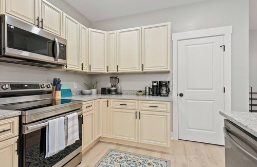 Welcome to Coakley Cottage, a charming and fully furnished 3-bedroom, 2-bath home in Savannah, GA—perfect for extended stays. This pet-friendly retreat features a spacious open floor plan with a cozy living room, smart TV, and a fully equipped kitchen that flows effortlessly into the dining area. The primary suite offers a king bed and ensuite bath with double sinks and a walk-in shower, while the additional bedrooms provide queen beds and plenty of closet space. Enjoy the convenience of an attached 2-car garage, in-unit laundry, and a fully fenced backyard ideal for your furry companions. Relax on the rear patio with seating for four and a propane grill, or let your pup play freely in the expansive yard. Located in a quiet neighborhood with easy access to downtown Savannah, Coakley Cottage is the perfect home base for work, relocation, or simply soaking in Southern charm for a while.
