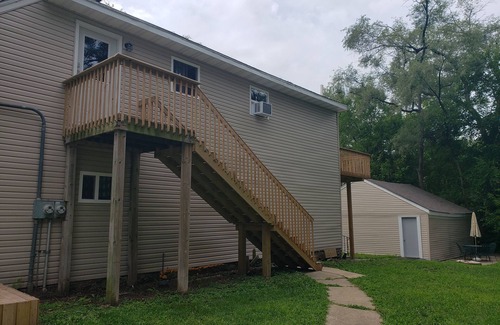 Spacious and serene space located in a quiet neighborhood. Second floor 2 bedrooms, one bath unit with private entrance. Queen bed in 1st bedroom, 2 twin beds in 2nd bedroom. Spacius kitchen with basic supplies for making and enjoying meals together. Off street covered parking, this home is located close to shopping and restaurants. Centrally located near 3 of Rockfords main roads to get you easily anywhere in town.