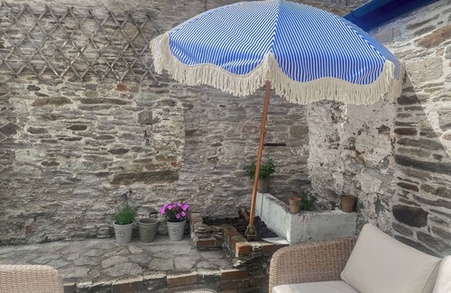 Le Grand Bleu, set in the picturesque village of Aveton Gifford, Devon, is a charming cottage that sleeps up to five guests, featuring three cosy bedrooms and a gorgeous courtyard for a perfect countryside retreat.. 1 step to entrance.
