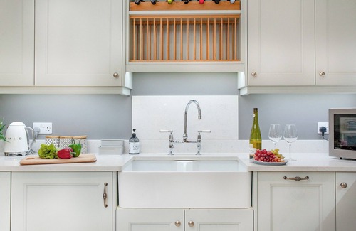 As you enter the cottage, you will instantly feel at home in the luxurious and stylish kitchen with its granite worktops, dining table and chairs, and a full range of appliances. Two of the bedrooms are located on the ground floor, the first is accessed four steps down with a kingsize bed, beautiful vaulted ceilings and an en-suite shower room. The other has a kingsize bed and is adjacent to the family bathroom, which is fitted with a walk-in shower and roll-top bathtub. Head upstairs to discover the open-plan living and dining area which is comfortably furnished with plenty of seating, a dining table and chairs, Smart TV with Freeview and a wood burner. The perfect space for winding down and watching a film after a busy day exploring the coastline, or for planning out those up and coming adventures. This then leads through to the third bedroom with a kingsize bed. In front of the property is a pretty patio area with a bistro table and chairs, a great spot for enjoying your morning coffee in the sunshine.